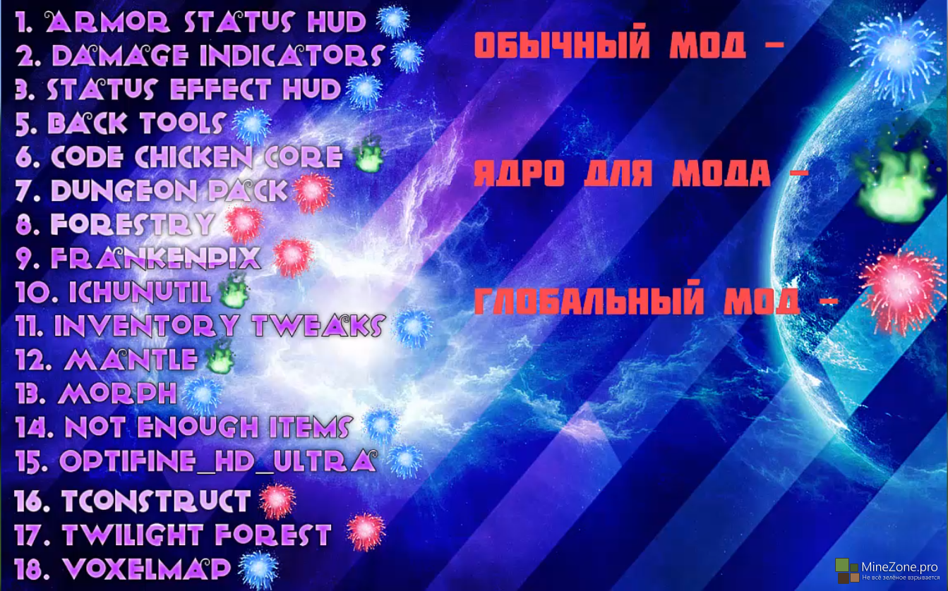 В моей сборке 18 модов, в отличии от моей прошлой сборки тут уже 5 глобальных модов!