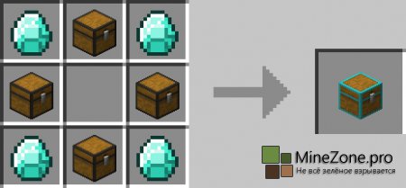 Данная модификация добавляет в игру всего один предмет, с довольно таки дорогим крафтом - мульти-сундук. Вам стоит потратить на него четыре алмаза, но вы не пожалеете об этом. Данный сундук может вместить в себя целых 585 стаков любых предметов. Интерфейс сундука достаточно прост, ячейки разделены на 5 страниц