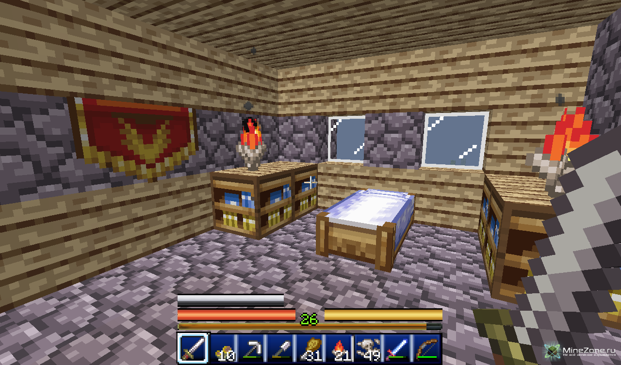 Они изменяют всех мобов, практически все предметы, хэд-ап-дисплэй (тоже самое, что интерфейс), и даже внутриигровой язык. Всё, от блеска оружия до листиков на деревьях. Всё в стиле RPG. Кроме того, имеют место быть новые световые и другие эстетические эффекты. Курящиеся факелы. Извивания только что пойманной рыбы. Притягательно лоснящиеся алмазы. После стандартных текстур, эти будут выглядеть потрясающе.