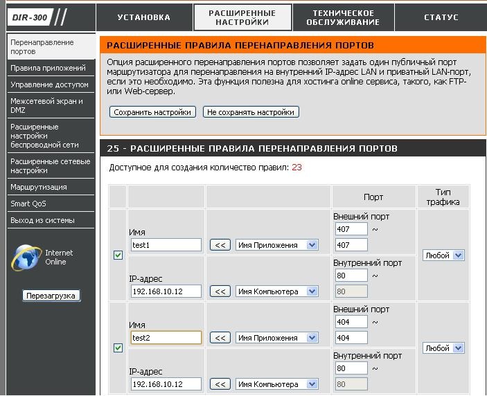 (в данном случаи на локальном IP 192.168.10.12 открыты порты 407 и 404)