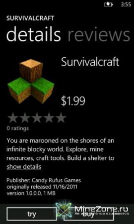 Довольно давно вышел любительский порт Minecraft'a для PSP, на прошлой неделе, наконец, официальные порты для IOS и Android, но для перспективной Windows Phone 7 не было ничего.. До прошлой недели.. Именно тогда группа любителей, именуемая Candy Rufus Game выпустила свой первый билд, который в первый же день набрал более 1500 скачиваний!