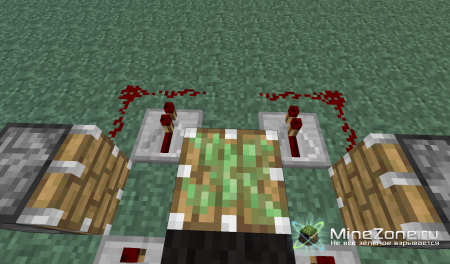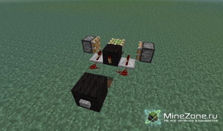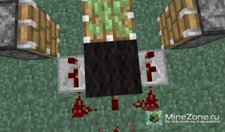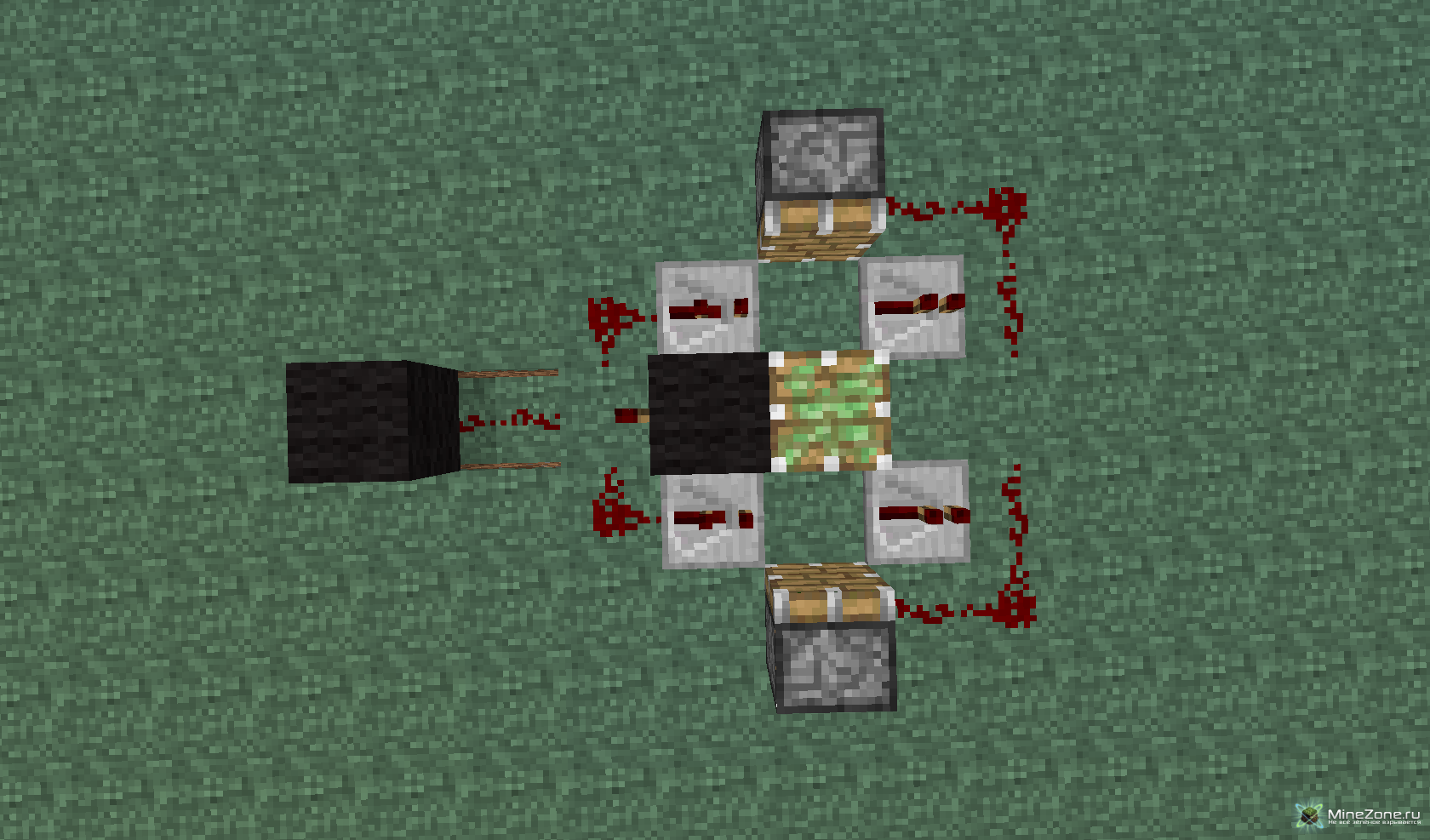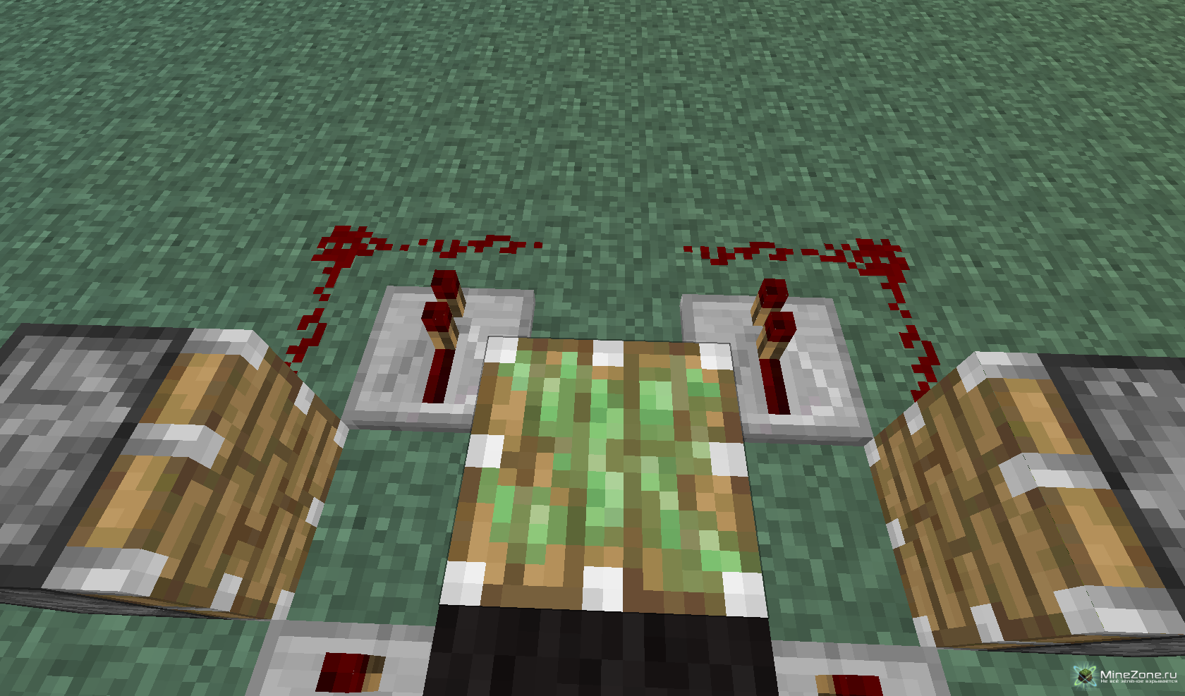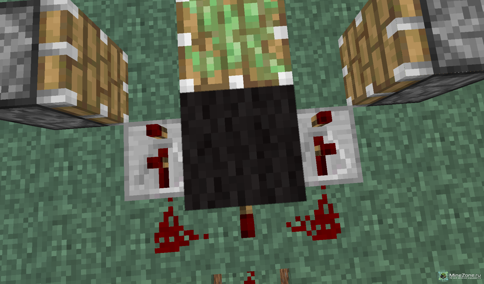5. Тут нам понадобится поставить 2 редстоуна, 2 репитора, 2 поршня. Смотрим: