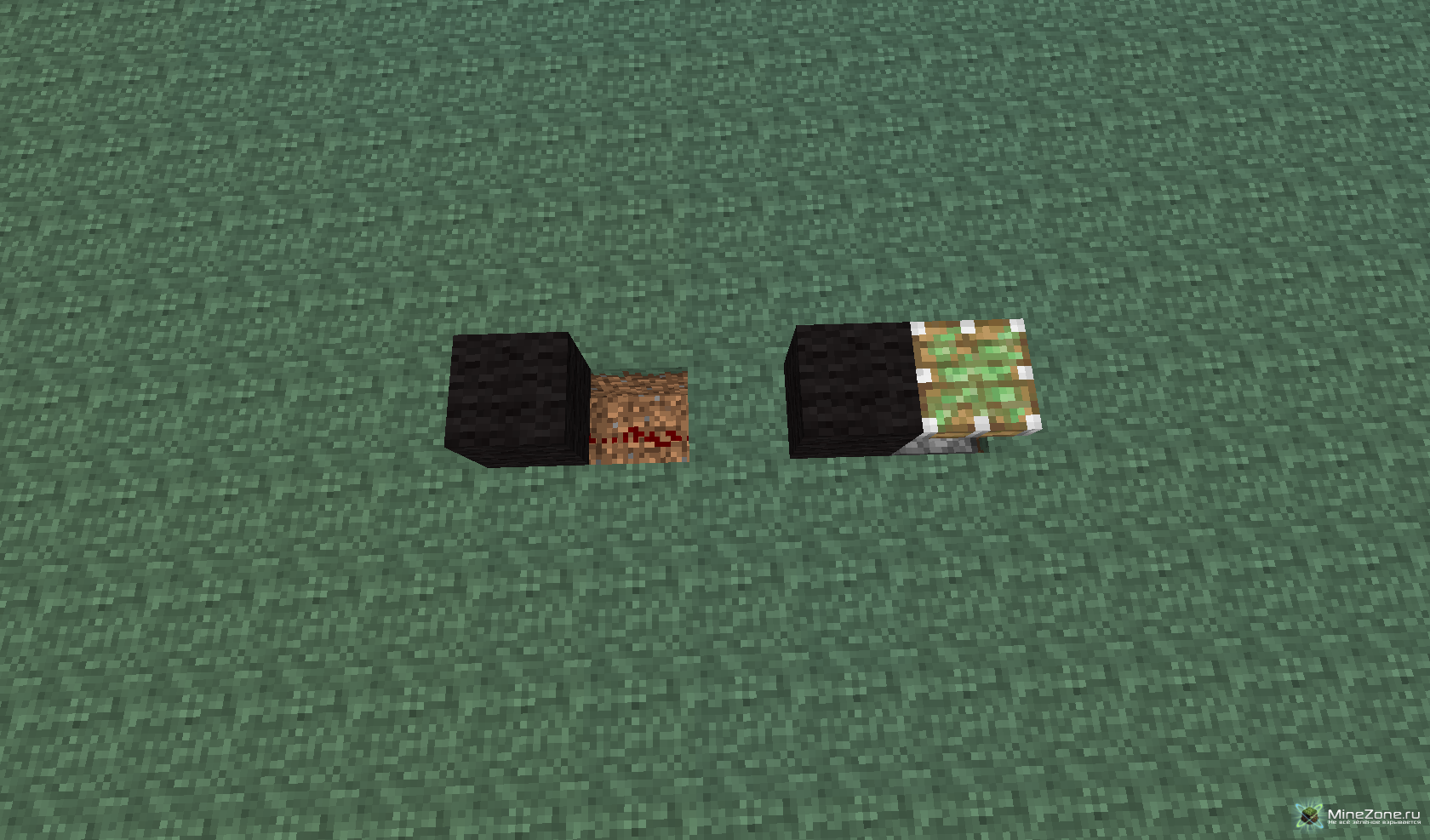 2. Выкапываем ещё одну ямку 2x1, ставим туда 2 редстоуна. Смотрим рисунок: