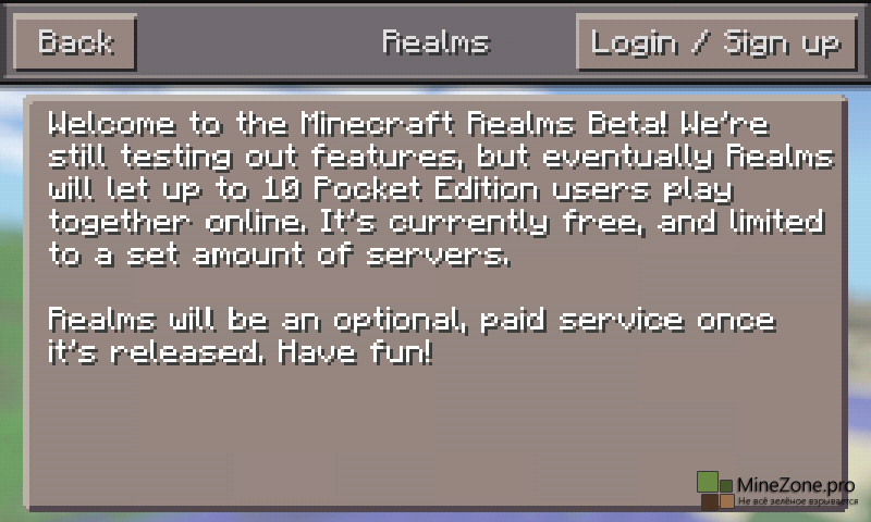 2. В разделе "Сетевая игра" вы можете играть онлайн, создавая или присоединяясь к серверу Pocket Realms (вы должны быть приглашены, чтобы присоединиться к серверу).
