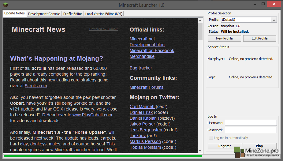 Именно поэтому я несколько изменяю формат скачивания официального клиента у нас на сайте. Ниже прикреплены лаунчеры для основных операционных систем на рынке PC. Вам достаточно скачать и запустить необходимый файл, все остальное он сделает за вас (т.е. скачает последнюю версию игры с серверов Mojang и запустит ее).