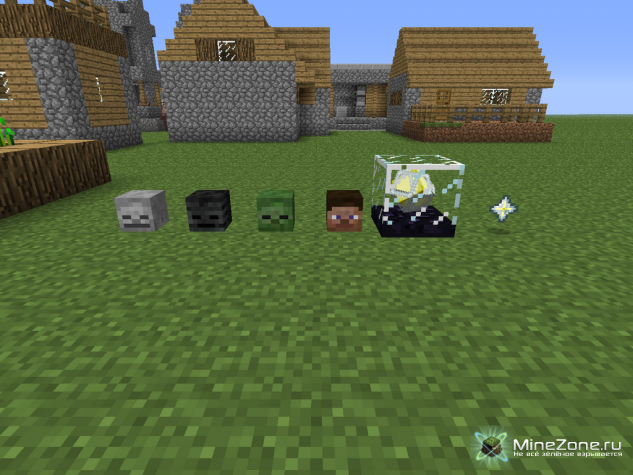 Добавлены головы зомби, крипера, скелета, wither-скелета и человека.