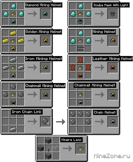 5) Miner's helmets - Мод добавляет в игру шлемы с фонарями, что намного удобней для быстрой проверки пешеры!