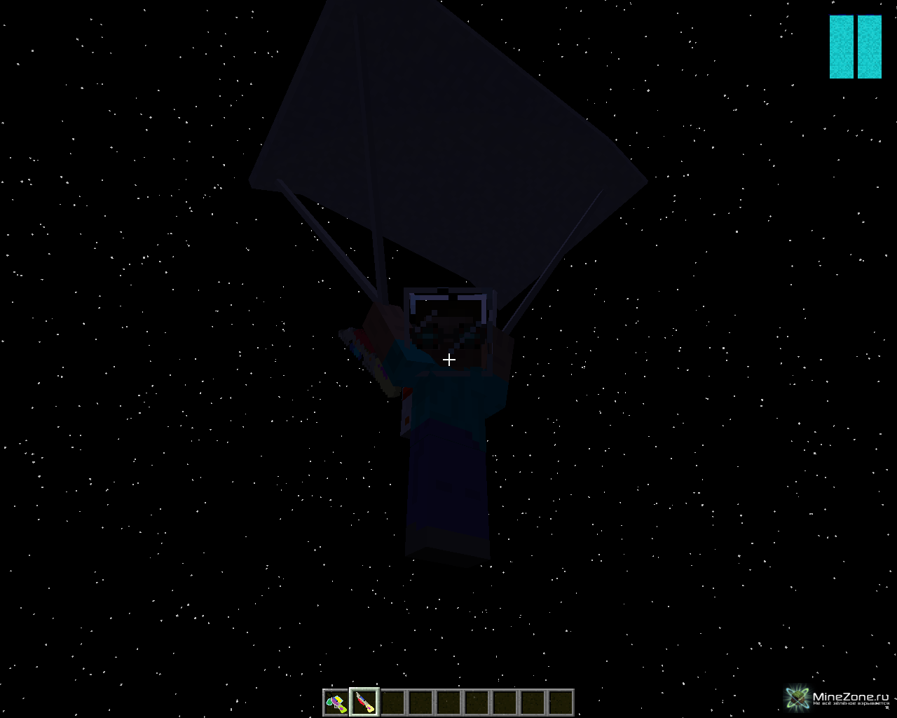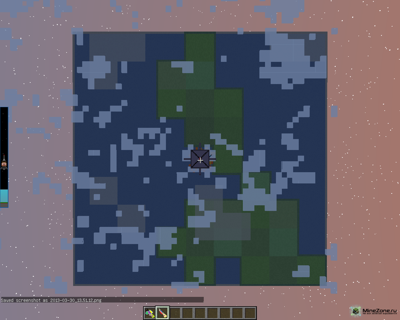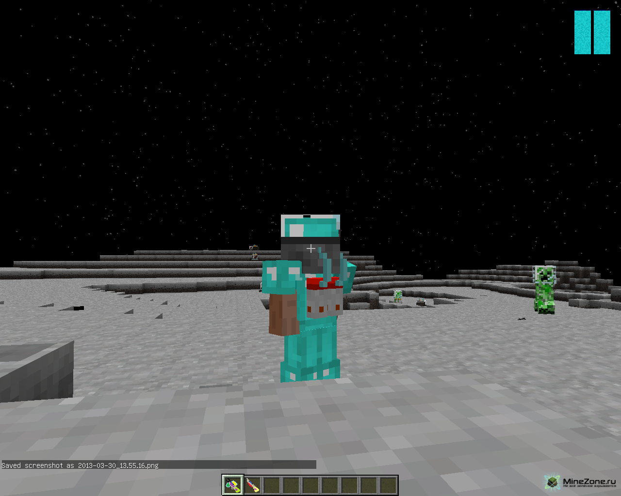 3.Galacticraft-Мод добавляет ракету и новое измерение-Луну, на которую можно долететь на ракете. Также если при себе будет определенное количество стальных, оловянных и железных слитков можно создать не большую космическую станцию(к сожалению скриншота не имеется)
