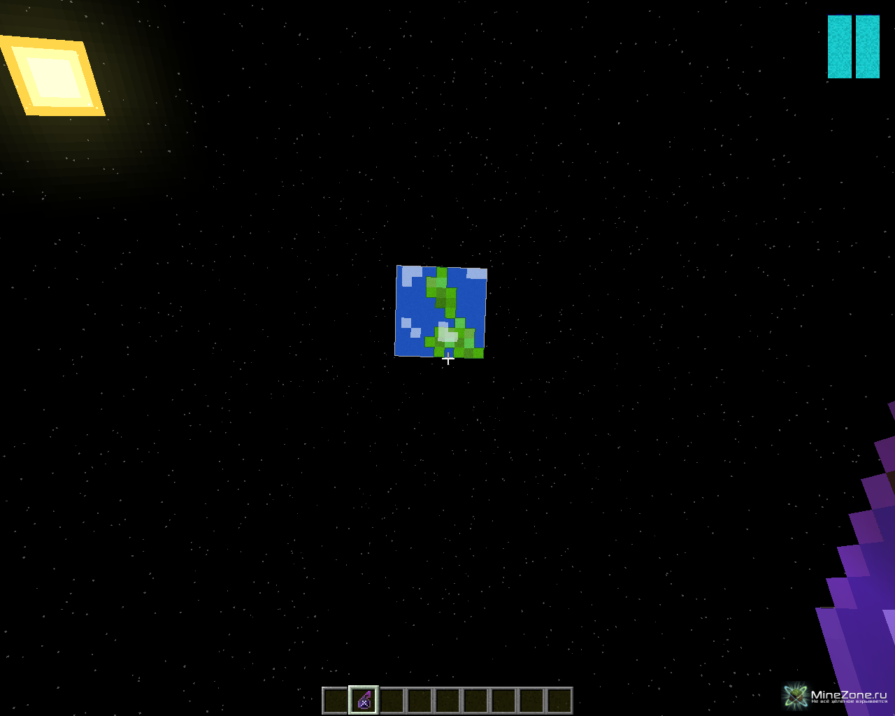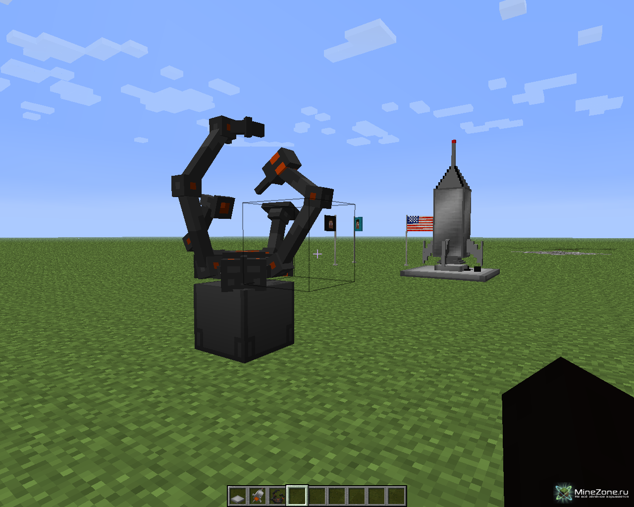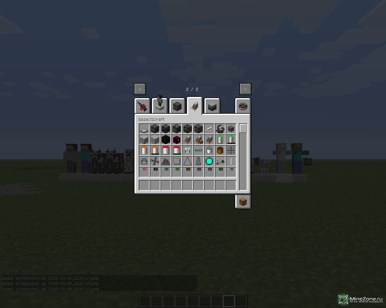 3.Galacticraft-Мод добавляет ракету и новое измерение-Луну, на которую можно долететь на ракете. Также если при себе будет определенное количество стальных, оловянных и железных слитков можно создать не большую космическую станцию(к сожалению скриншота не имеется)