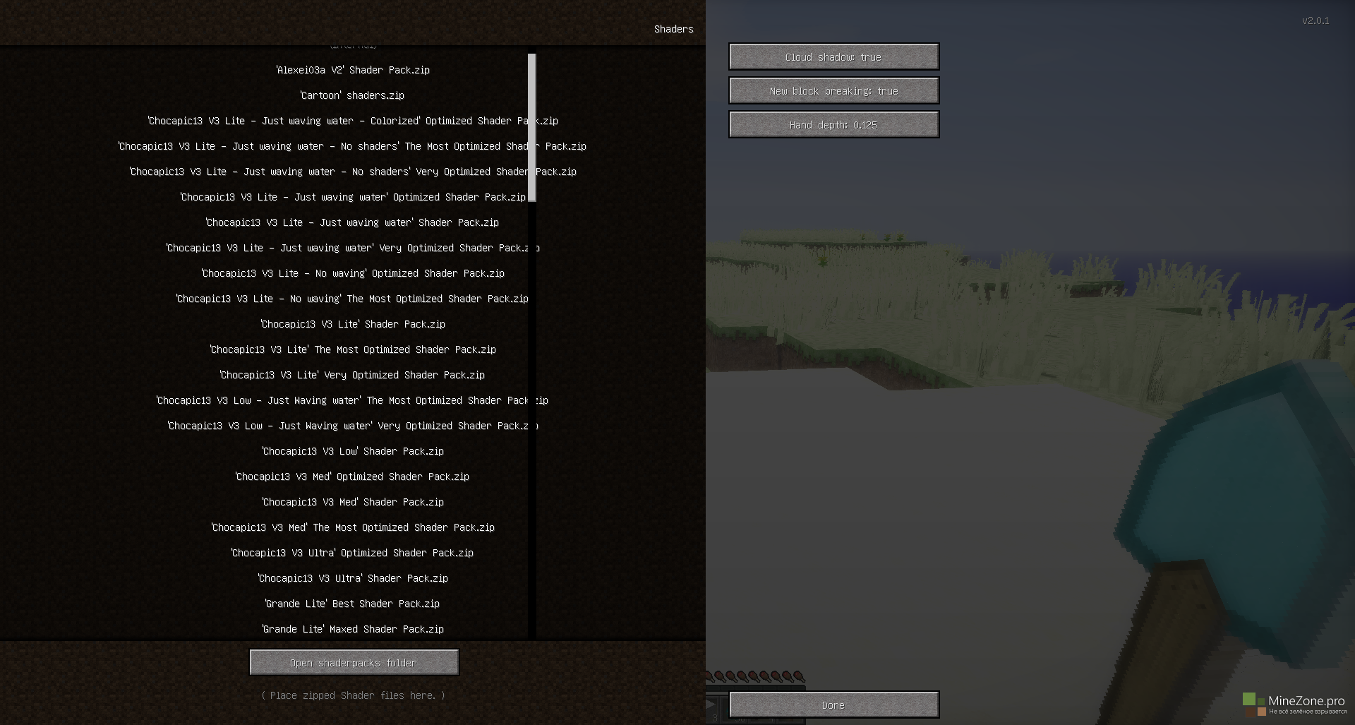 GLSL Shaders Mod - Данный мод добавляет значительные изменения в графике.