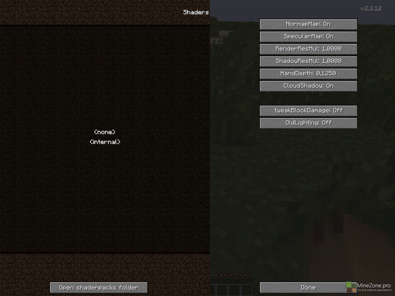 5. Shaders Mod - специальный мод для установки шейдеров. (Они не входят в сборку)