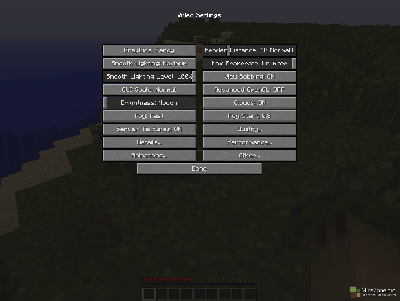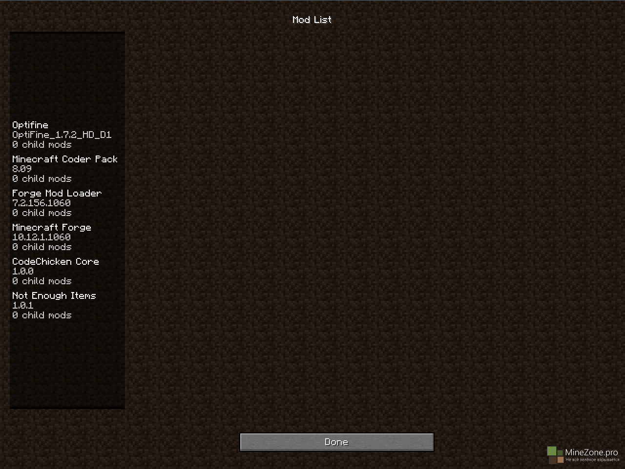 1.Forge - ядро модов. (Установлены только моды, которые перечислены ниже)