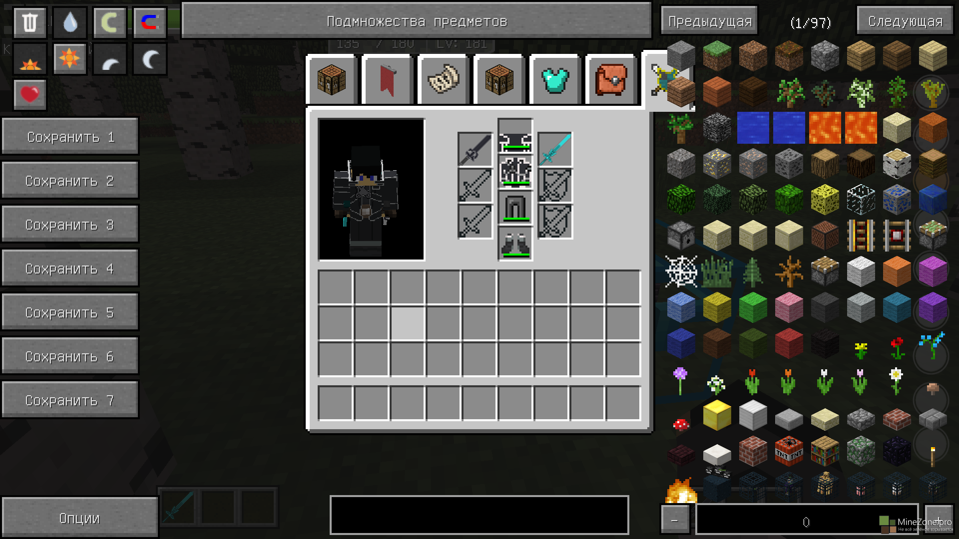 ebon arts - большое количество новых декоративных блоков, руд, инструментов, оружия и брони.