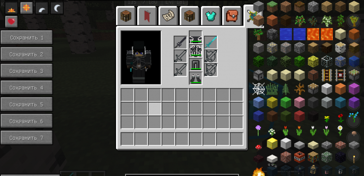 ebon arts - большое количество новых декоративных блоков, руд, инструментов, оружия и брони.