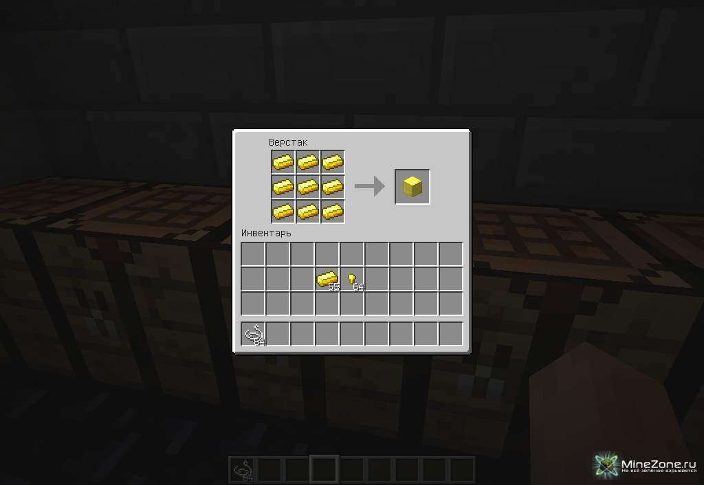 Откуда брать блоки? Все очень просто, их нужно скрафтить из дропа а именно из паутины - шерсть и золотых самородков - золотой слиток - золотой блок