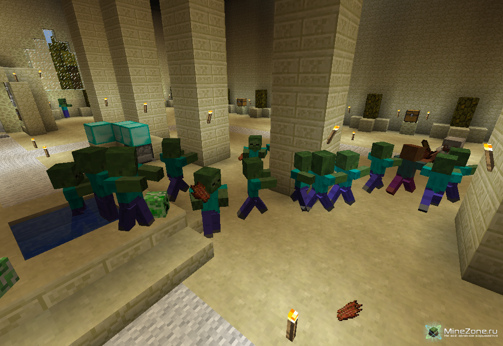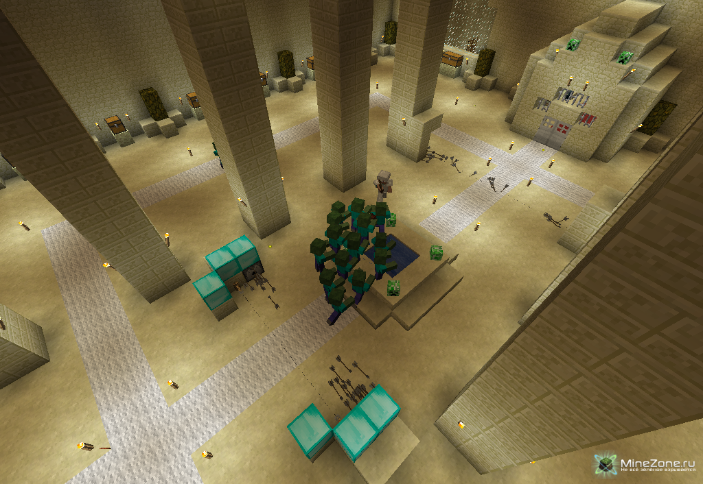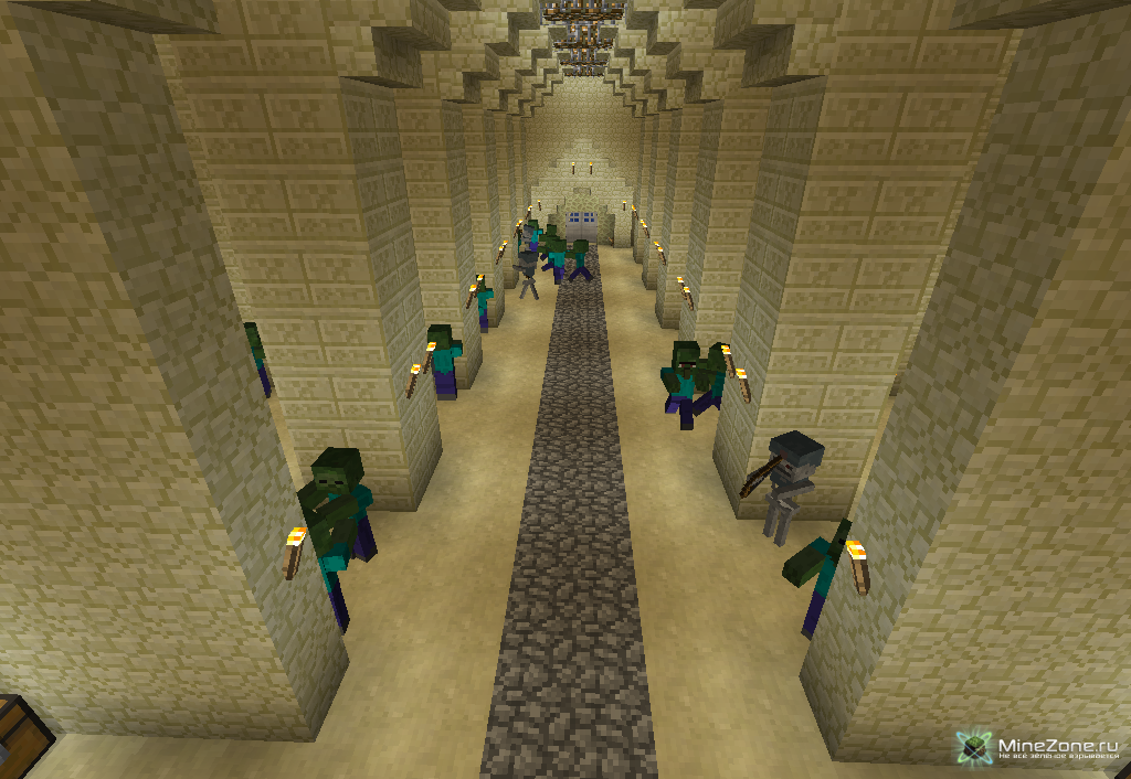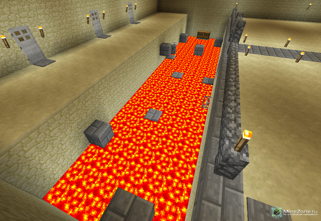 Mine Rock это серия карт на прохождение, пока что создана только первая глава Desert Flame которая выполнена в пустынной тематике, но в скором времени появятся больше карт. На этой карте вам предстоит выполнить 8 заданий каждое из которых предаст вам новое ощущение от игры. Здесь присутствует 3 типа игры : Бои с монстрами, паркур, поиск предметов (ключей). И в конце вас будет поджидать босс.