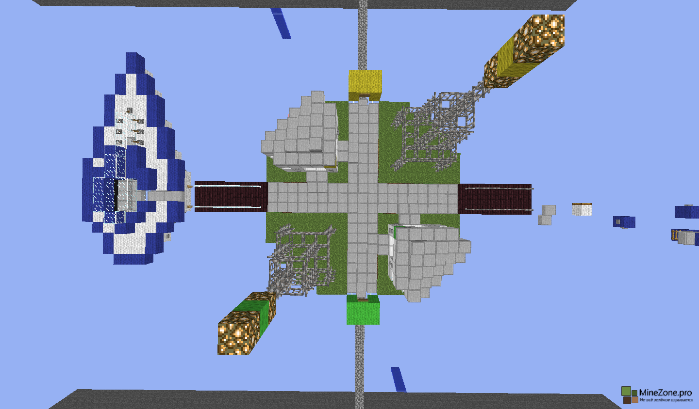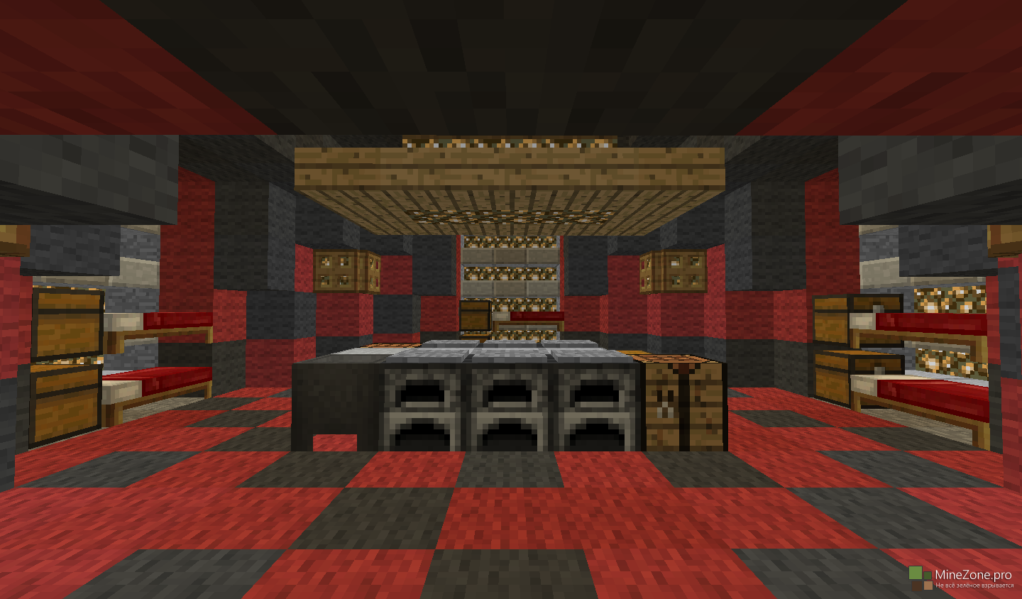 Играют две команды. В каждой команде максимум шесть человек (можно и больше, но тогда возникнут некоторые трудности). Изначально все попадают на спавн. Там же все по готовности расходятся по специальным комнаткам и главный игрок (сами выберите кто им будет, но он на время должен быть в креативе) нажимает на рычаг под спавном и игра начинается. Команды попадают на две совершенно одинаковые территории и начинают развиваться, как в обычной игре. Их дальнейшая задача проникнуть на территорию врага и захватить её (полностью обезоружить врага или как-либо по другому на ваше усмотрение).