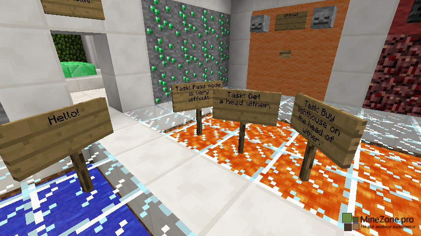 Задание:Пройти режим очень сложно.Получить голову witherа.Купиь маяк у жителя.Поставить его на на изумрудные блоки.