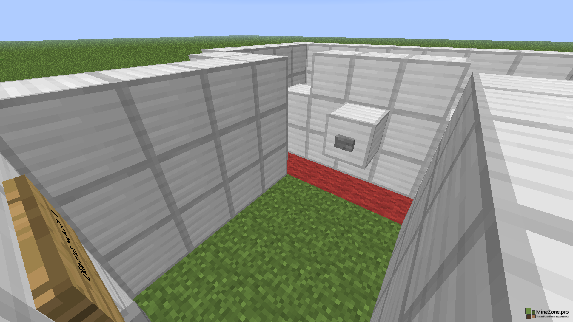 -Известен баг, при котором вы можете обнаружить лежащий на земле командный блок позади кнопки