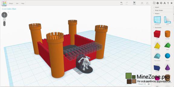 - Просто перетаскивайте фигуры из правой части экрана в редактор. Перемещение, масштабирование и вращение будут доступны сразу после создания формы. На картинке представлена возможность вычитания одного объекта из другого. Достаточно пометить цвет одного из них как Hole и нажать Group. После этого в вашей постройке будет дыра в виде объекта, помеченного как Hole.