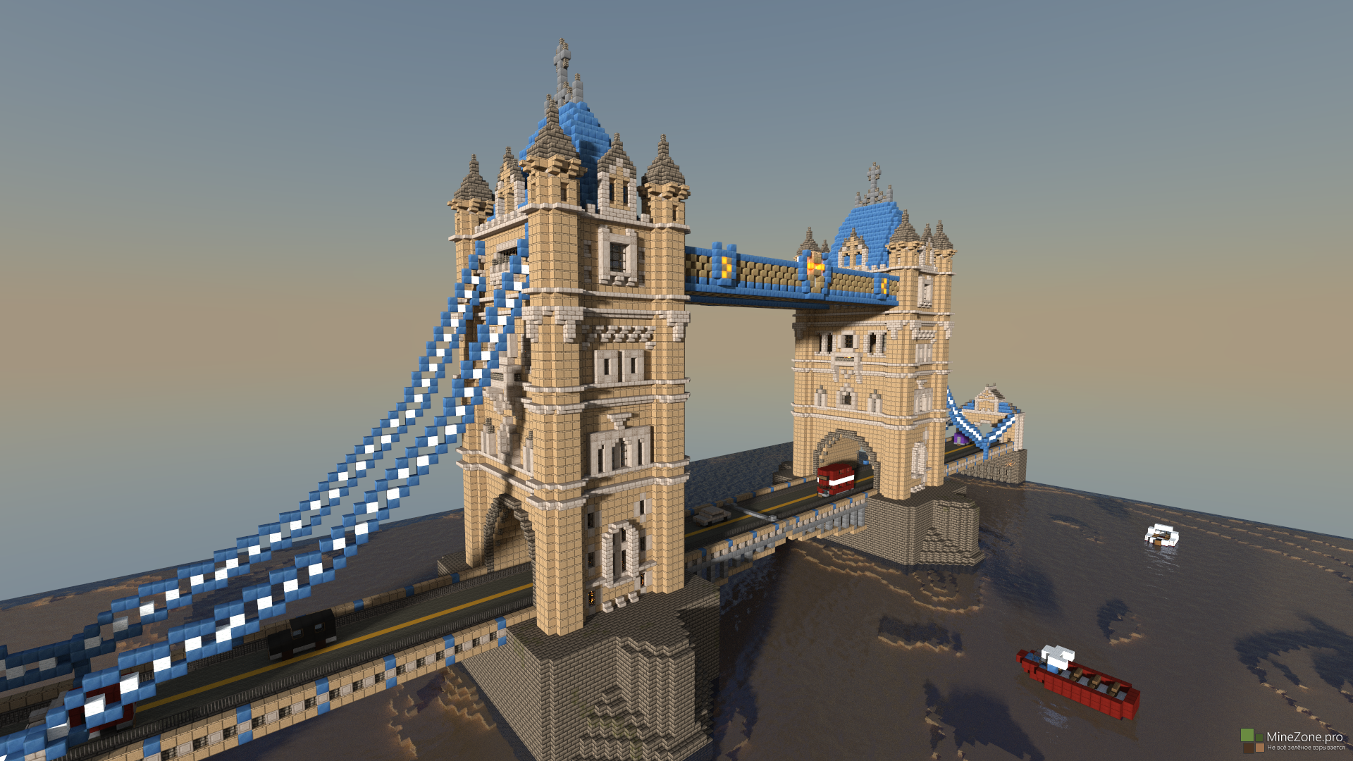Tower Bridge MineCraft - это копия известного во всем мире одного из символов Великобритании. Величественный подвесной мост XIX века прямо у Вас в любимой игре! Ниже Вы можете найти подробное описание.