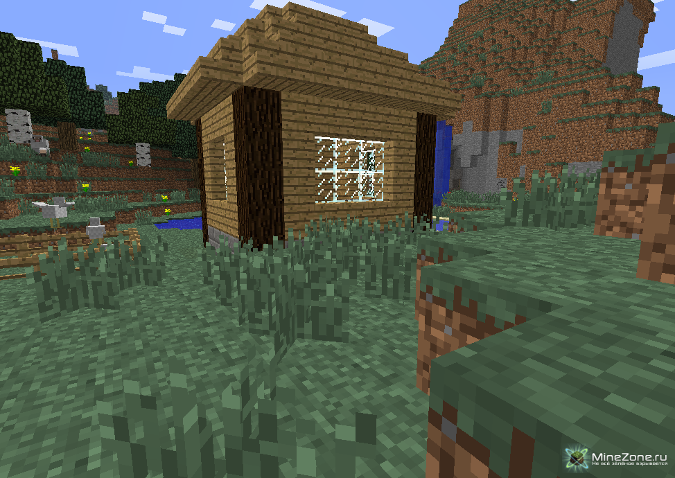 Сам дом, водопад, мини ферма, много больших деревьев и