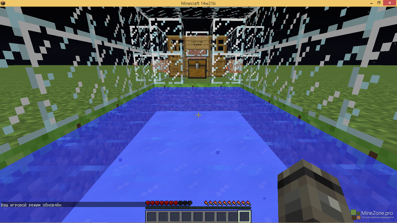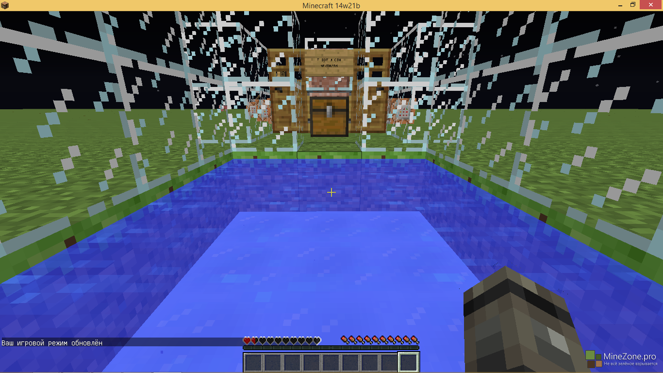 - Создаем Scoreboard отсчитывающий расстояние проплытое в воде. (/scoreboard objectives add 1 stat.swimOneCm)