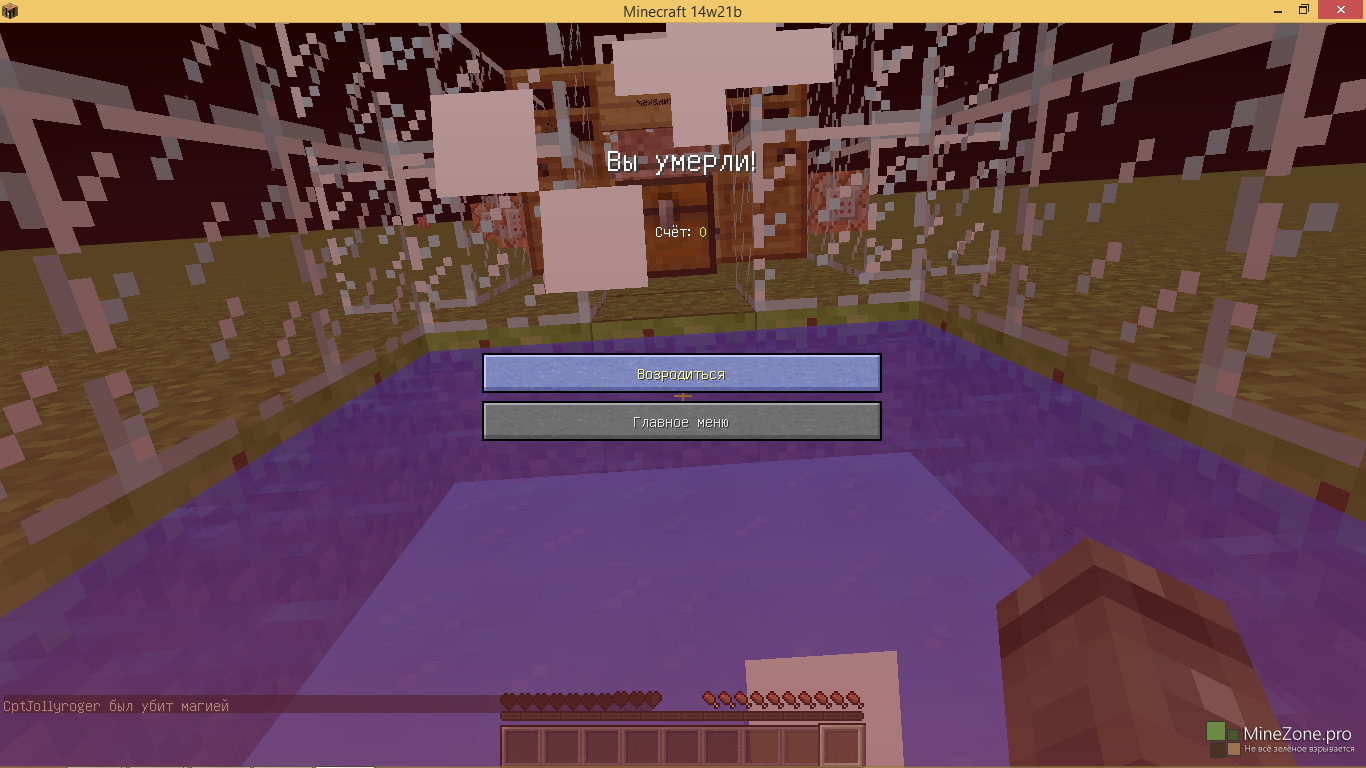 - Подключаем к замыканию командный блок, который будет убивать того, кто плывет.