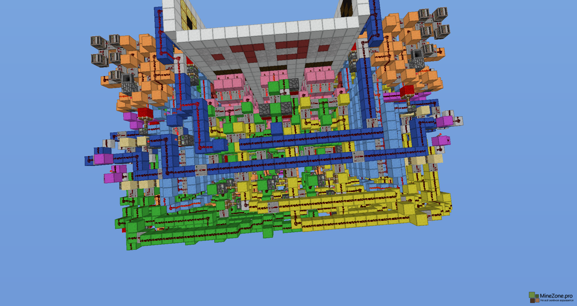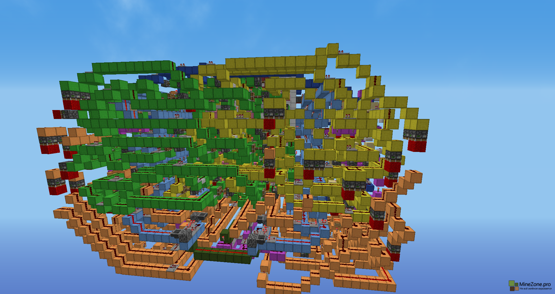 - Ни одного командного блока! Всё на редстоун схемах.