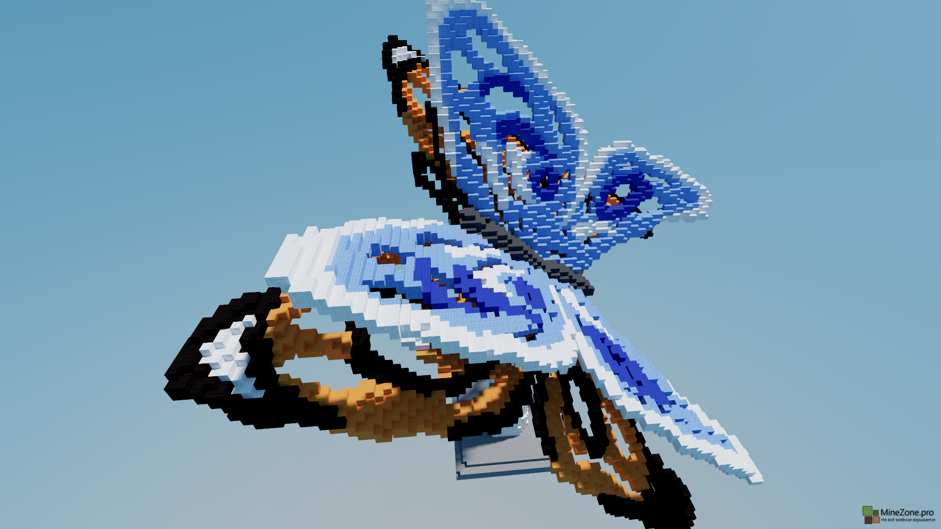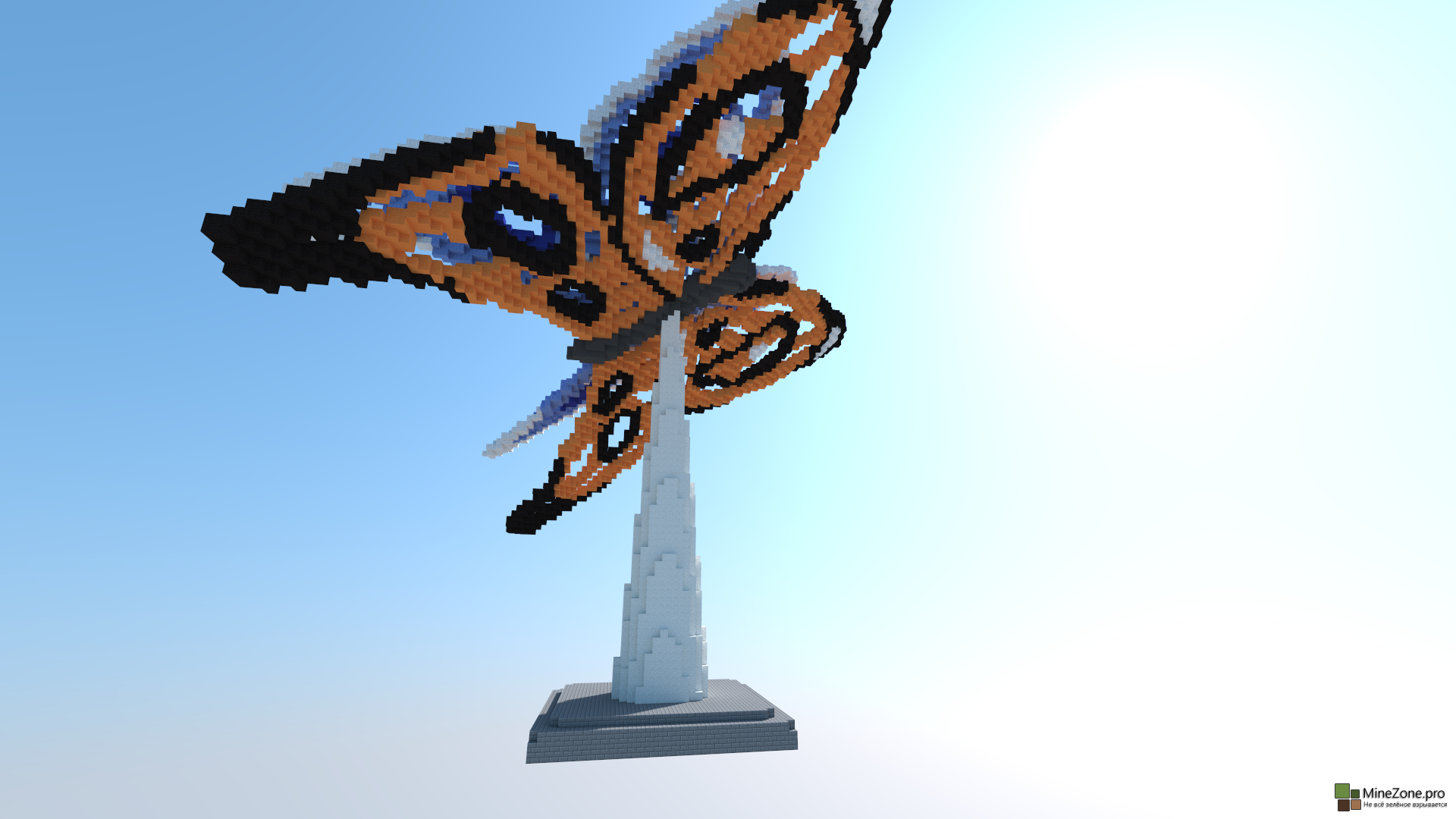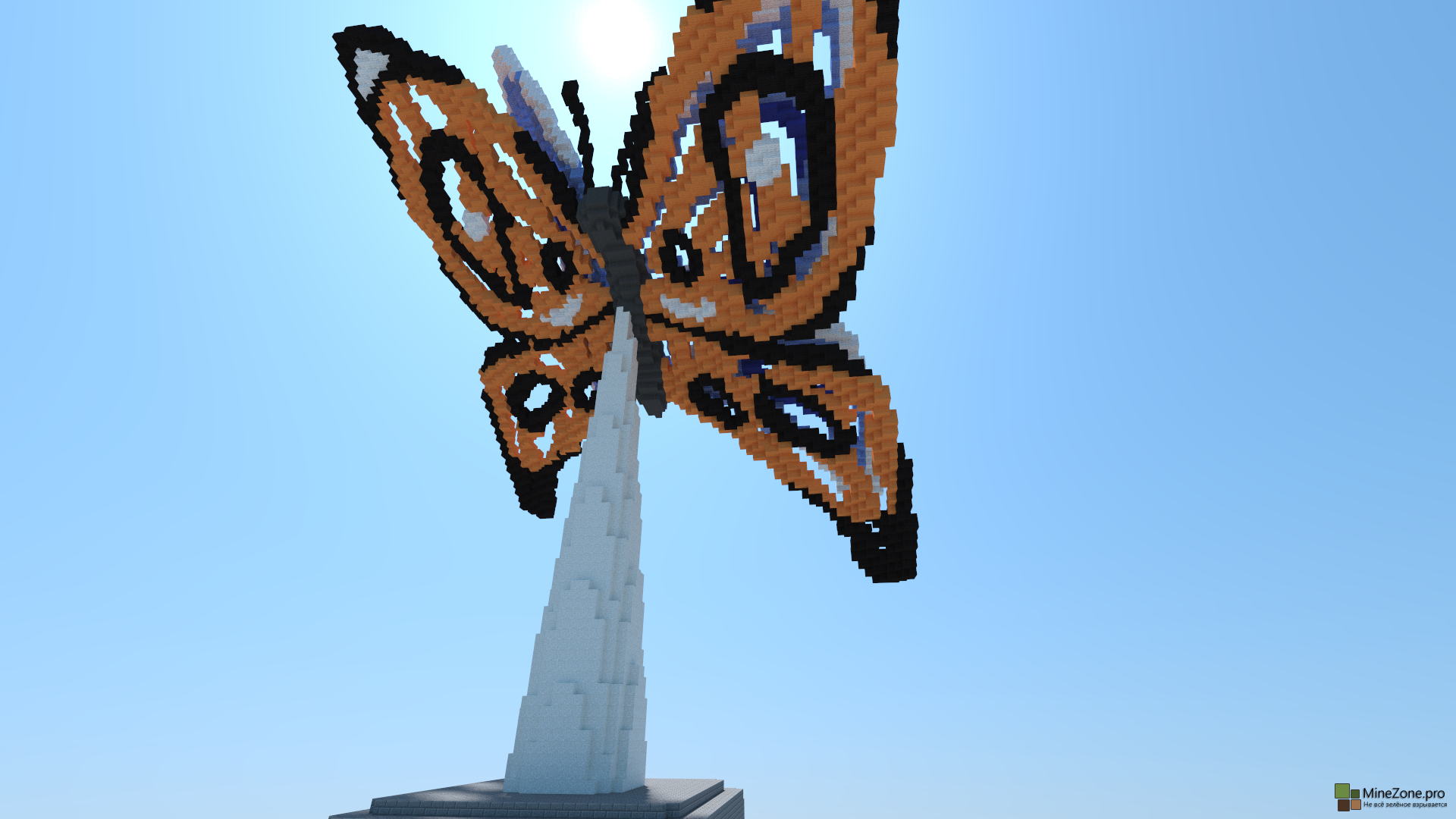 Одна из моих последних работ. Простенько и со вкусом. Почему четыре пары крыльев? Да бог его знает. Я так ее увидел. Всего на постройку я потратил около 5 часов чистого времени и задействовал 12000 блоков шерсти (Сам постамент в их число не входит).