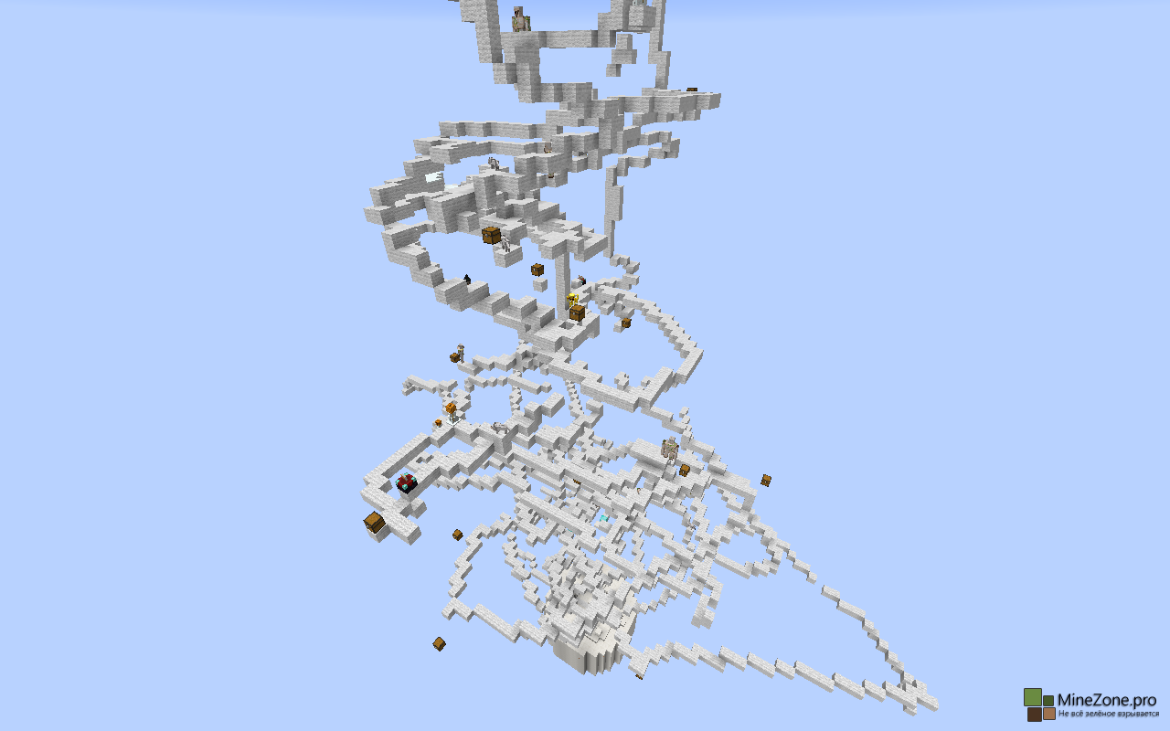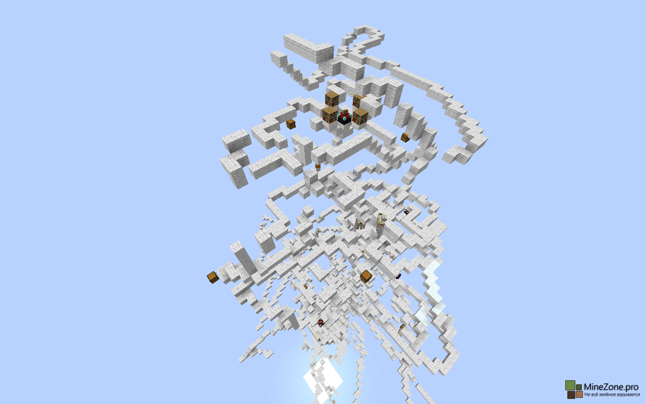 Данная карта рассчитана для 2-4 человек. Для того, чтобы победить, нужно остаться последним выжившим. Как только Вы наденете алмазные сапоги, Вы сможете перемещаться по воздуху. Под ногами игрока будут появляться блоки шерсти. На спауне можно найти сундуки с базовыми предметами. Вещи по-лучше разбросаны по арене, все они находятся в сундуках, парящих в воздухе. Важная особенность: начать новую игру возможно только установив свежую копию карты.