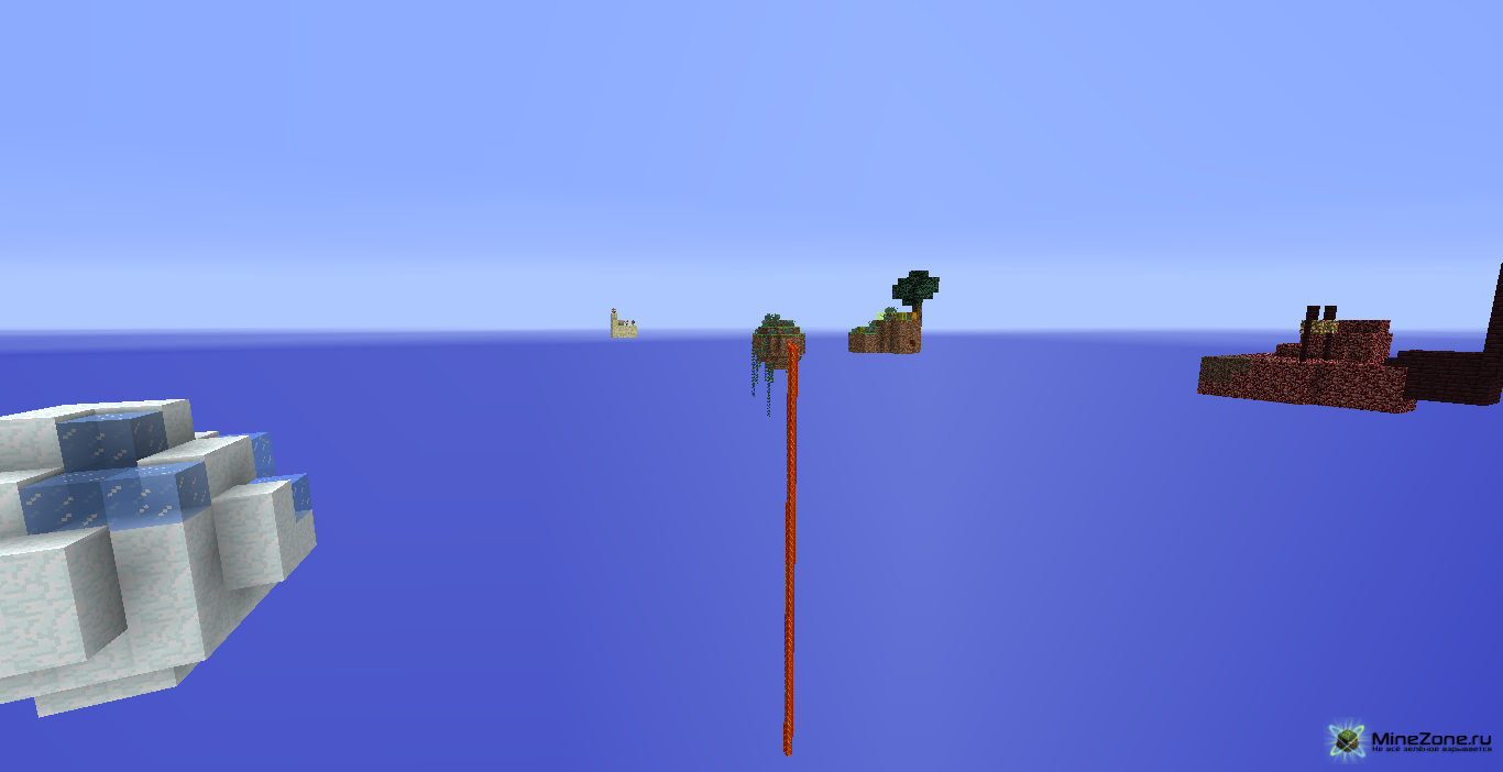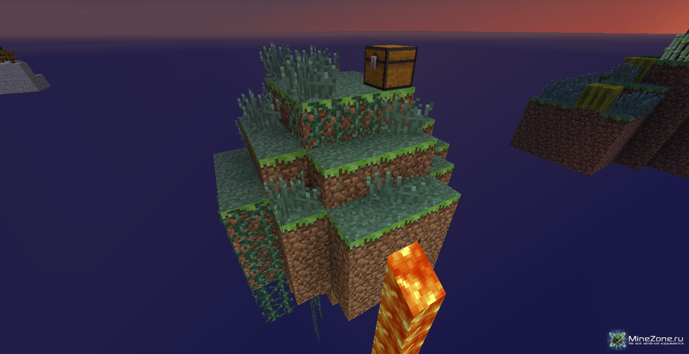 Описание:Остров, на котором вы спавнитесь если умираете и как только начинаете игру. Имеет форму шара. Также на нём есть трава, из которой могут выпасть посевы. На острове можно найти 1 блок лавы.