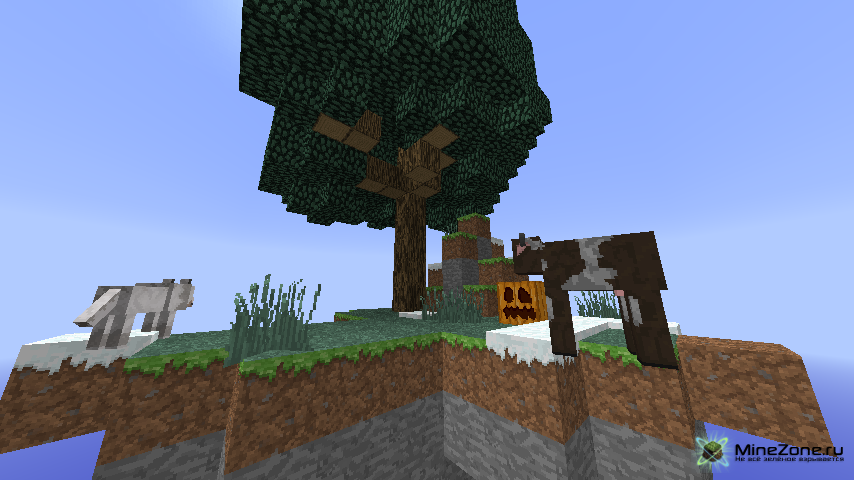 Хоть дерево и одно, но оно большое. Еще на острове есть корова и волк, по непонятной