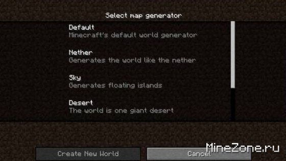 После установки данного мода, при создании нового мира вы увидите такое меню: