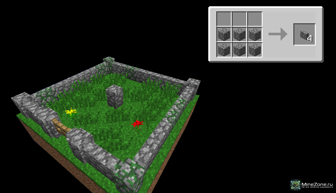 Благодаря этому моду вы сможете строить забор из песчаника, камня, кирпича и т.п. стандартных блоков.