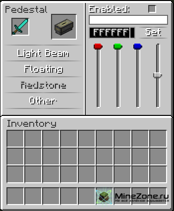 После этого ставим пьедестал в нужное место. С помощью правой кнопки мыши втыкаем меч. Жмем Shift + ПКМ, после этого у Вас появится следующее GUI: