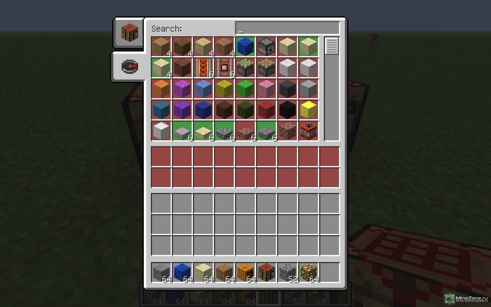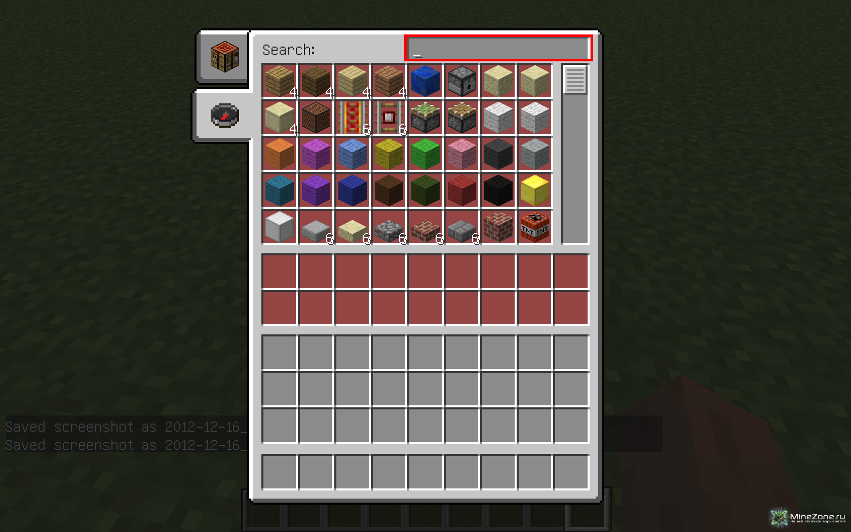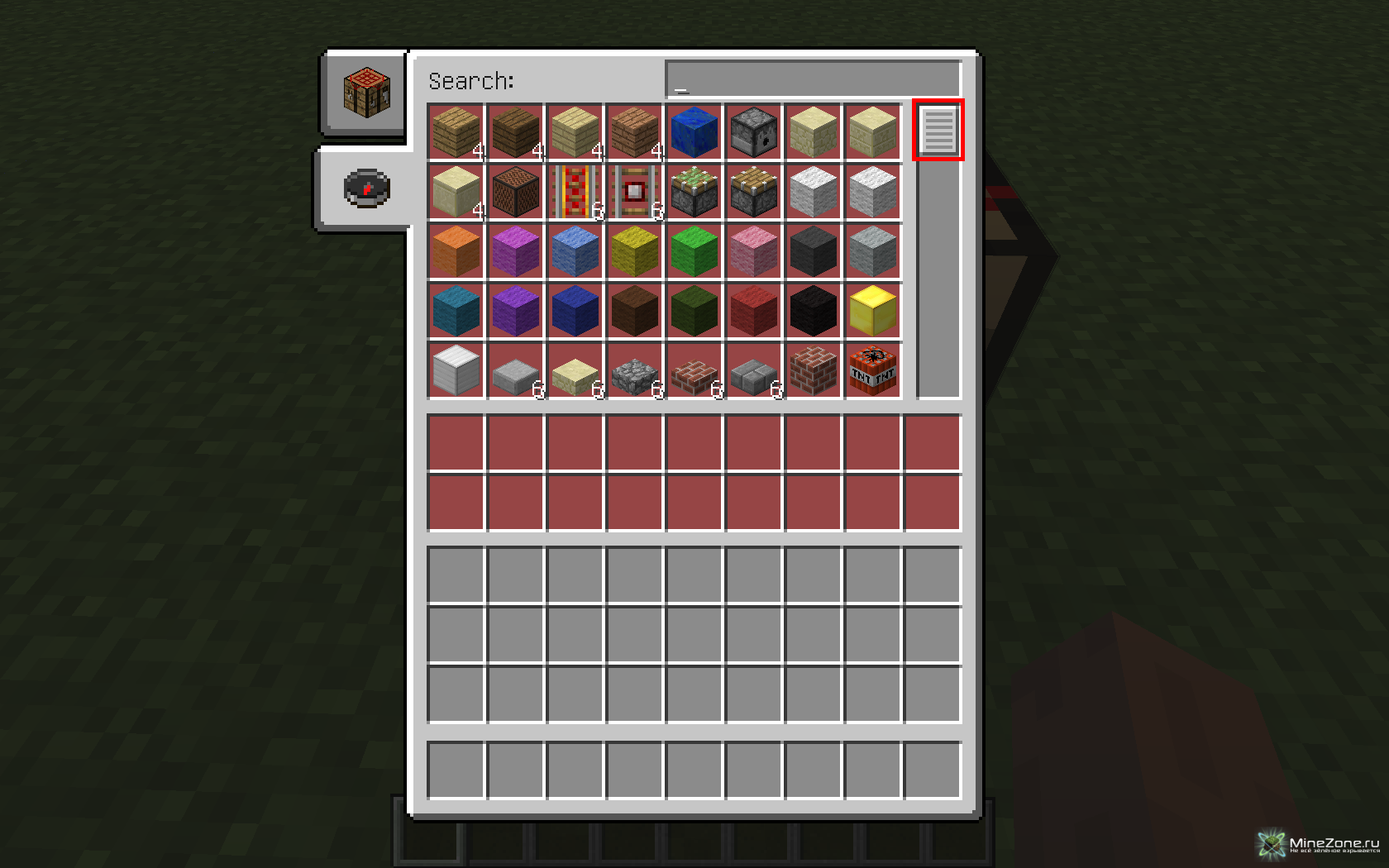 Нажав на кнопку Search Recipes, мы увидим расширенное меню, как в креативе