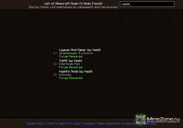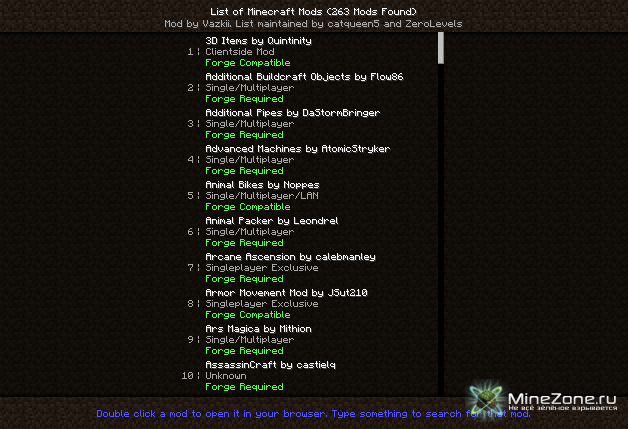 Мод, который добавит внутриигровой список всех модов, который автоматически сканирует minecraftforum.net показывает моды, доступные для закачки и установки.