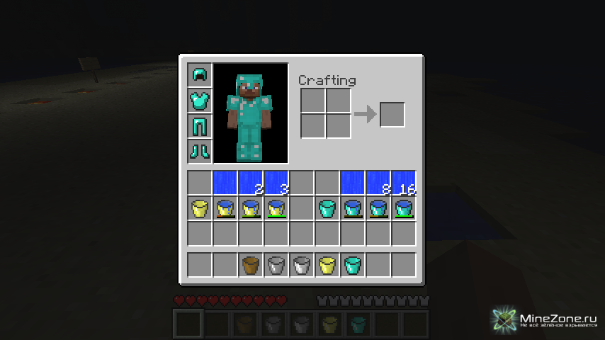 Алмазное ведро: может содержать до 16 воды или лавы, бонус: можно добыть овечьего молока!