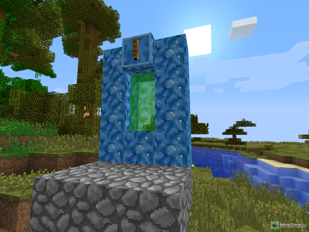 В эпохах с параметром Кристаллы (Crystals) можно найти синие кристаллы. Их можно добыть руками или киркой. Из таких кристаллов можно сделать портал, причём его можно делать любого размера (Хотя не стоит экспериментировать и делать очень большие рамки порталов. Возможна такая проблема, что перестанет загружаться карта.) и не обязательно прямоугольного. Но следует соблюдать несколько условий, для того чтобы портал работал. Рамка портала должна находиться в одной плоскости и быть замкнутой. Угловые блоки ставить не обязательно. Внутри рамки не должно быть лишних блоков, только воздух.