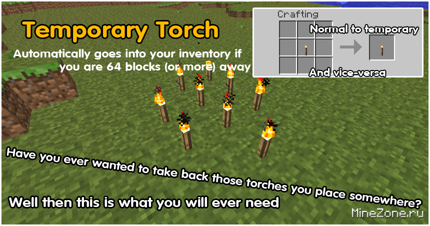 Если отойти от этого факела на 64 блока, то он вернется к Вам.