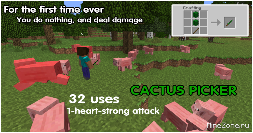 Урон - 1 сердце. Ломается за 32 удара. Может пригодиться, чтобы пасти скот.