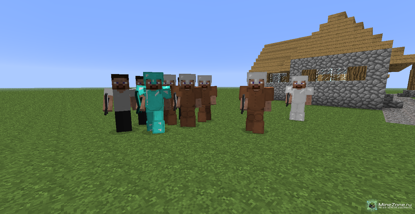 С данной модификацией жители превратятся в полноценных людей. Всего существует несколько типов - обыкновенный житель и житель в доспехах. После того, как Вы убьете Стива, у игрока есть шанс получить броню или оружие покойника. Также, теперь жители научаться давать отпор врагам. При нанесении урона жителю, все Стивы, проживающие в деревне, незамедлительно дадут сдачи обидчику. Будьте осторожны!
