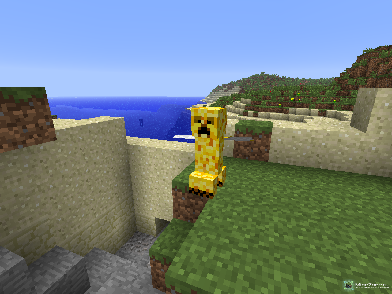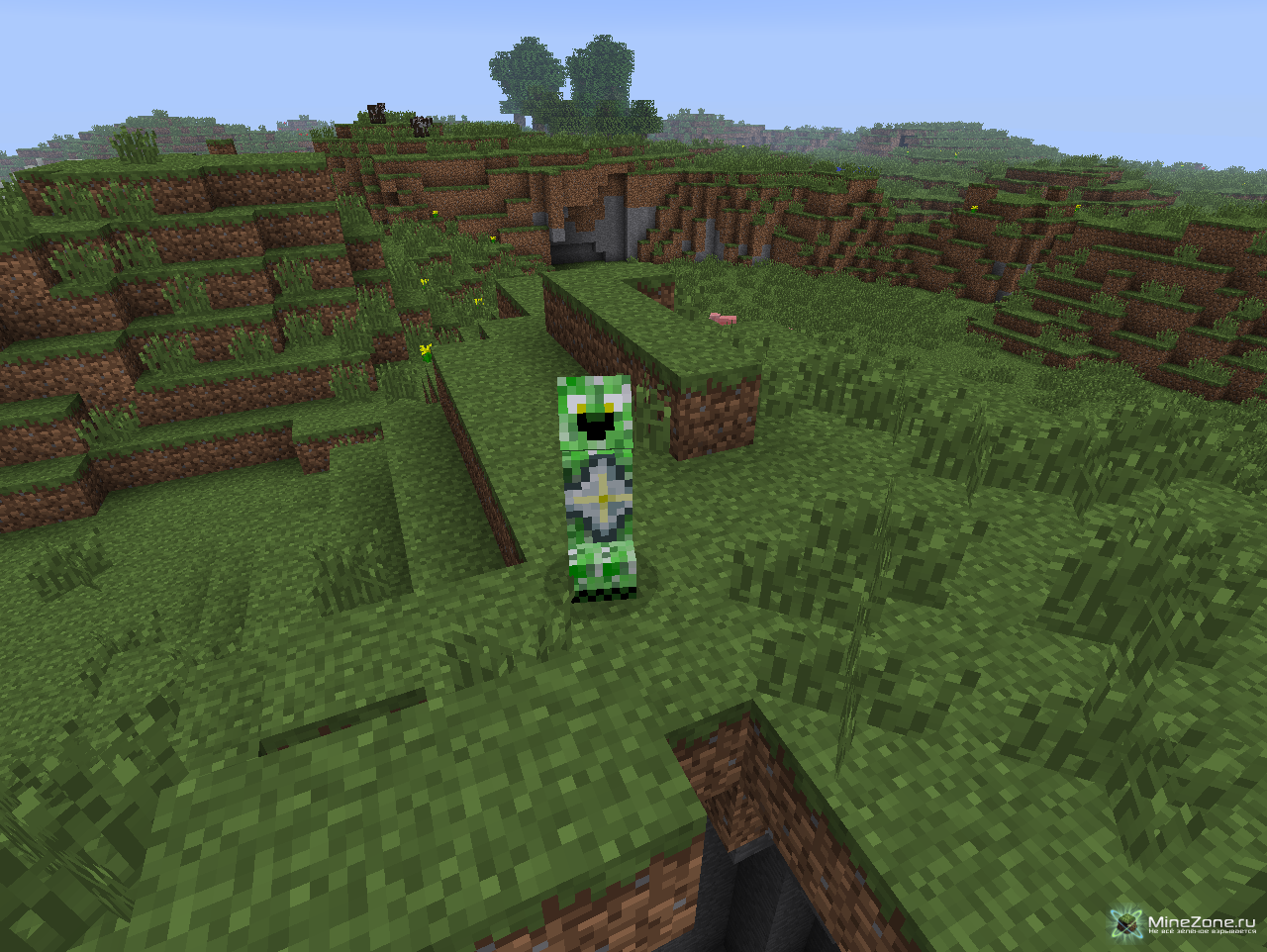 Разрушает ландшафт меньше чем стандартный крипер, с него выпадает свинина.