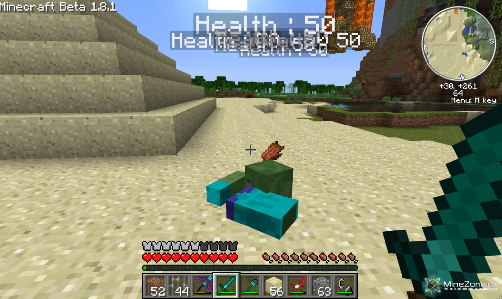 С модом Mob Amputation вы сможете прямо в игре расчленять мобов! Но, только некоторых, а если точнее: зомби, скелета и свинозомби. С крипером, к сожалению, не побалуешься...