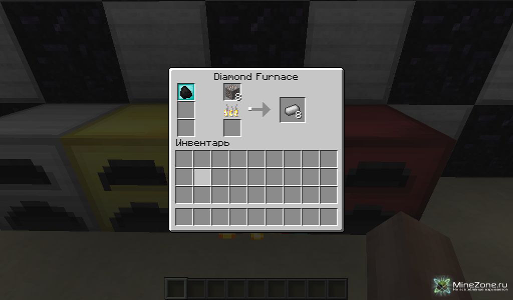 Неплохая печь на начальных этапах игры. Скорость плавки предметов увеличена в 1.5 раза при сравнении с обычной печью.