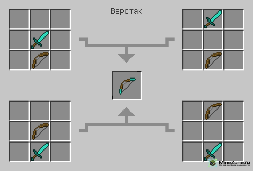 Кстати, эти вещи поддаются зачарованию, кроме луков (они зачаруются только в 1.4.6), так же их можно чинить (чинить всё, что добавляется модом)
