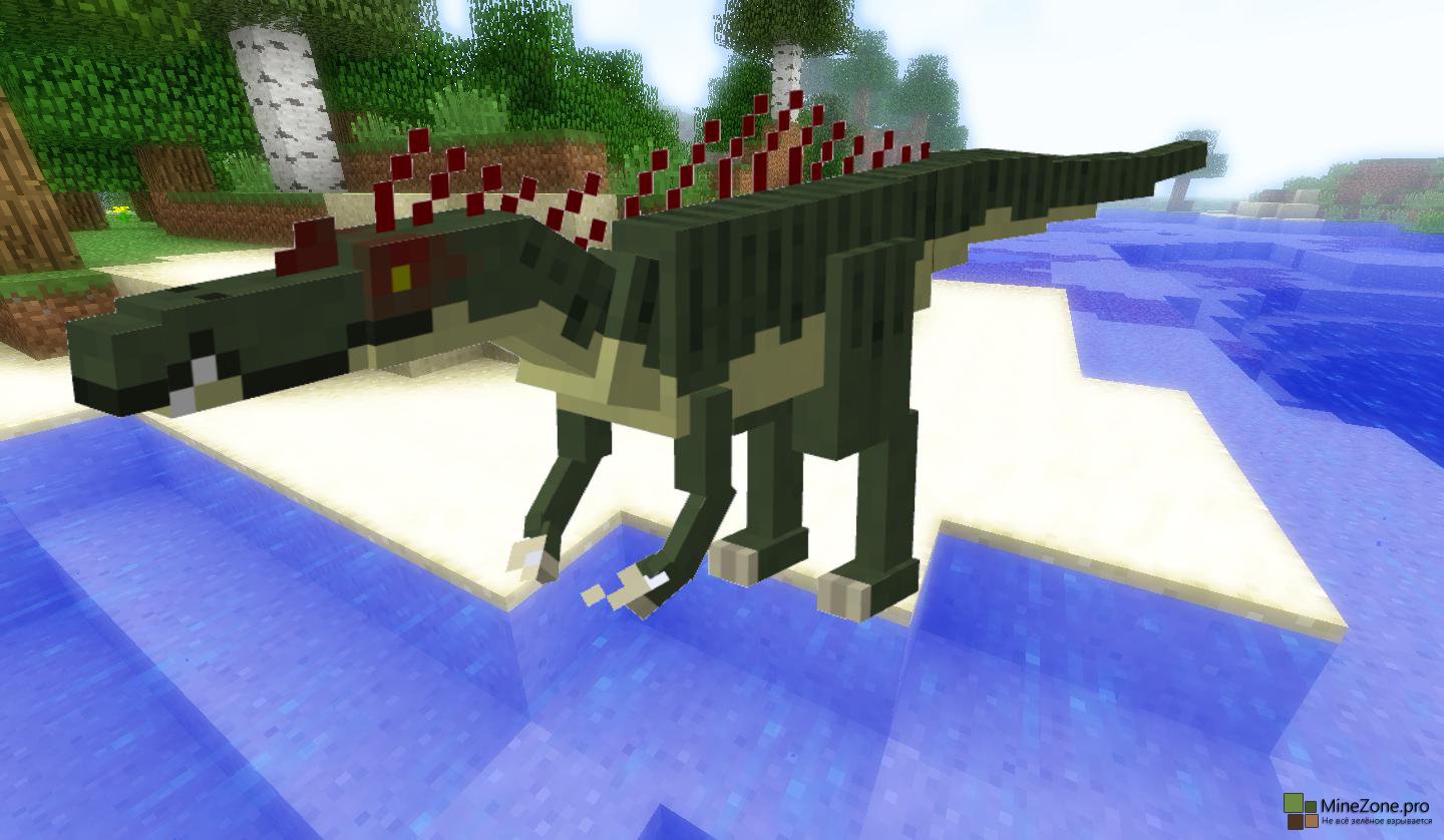 На данный момент, динозавров можно заспавнить только из их яиц призыва - только в креативе. Мод находиться в стадии бета-теста и в дальнейшем его глобально изменят.