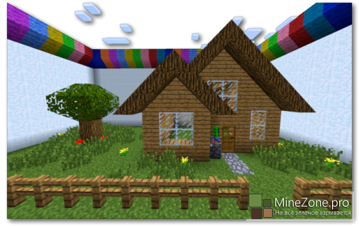 Как же построить такой дом? Возьмите каркас ступеньки, поставьте его правой кнопкой мыши на землю, а затем возьмите тот блок, который хотите «натянуть» на каркас. Щелчок ПКМ — и каркас станет полноценной ступенькой.