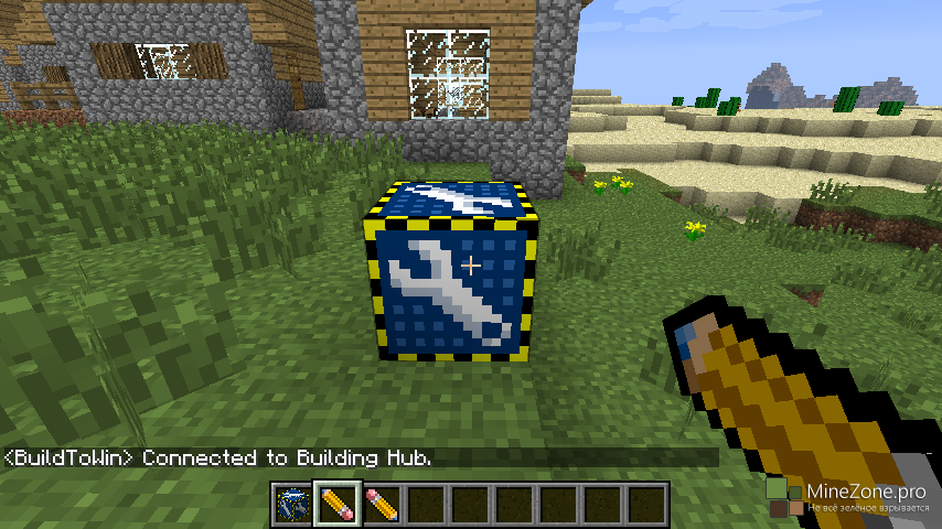 Сначала возьмите строительный блок, карандаш и ластик в креатив-меню. Затем подключите строительный блок, кликнув по нему карандашом или ластиком.